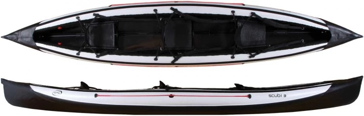 Das Scubi 3 ist das Freizeit- und Tourenkajak für Fließgewässer und Seen. Zwei Erwachsene und ein Kind oder zwei Paddler mit mehr Gepäck sind hier sicher unterwegs.