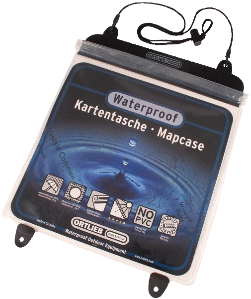 Große wasserdichte (IP64), knickbeständige Kartenhülle mit Klett-Rollverschluss, Umhängekordel. Abspannmöglichkeit z.B. auf Kajak, Rucksack, etc..