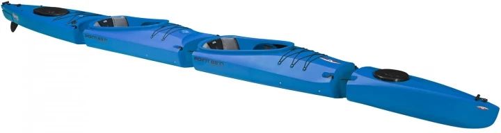 Schlank, lang und belastbar. Dieses Kajak wird aus drei Teilen zusammengesteckt. Da das Frontteil in das Mittelteil paßt, ist das Packmaß rekordverdächtig. Alle drei Teile sind mit dem patentierten Verschlußsystem blitzschnell und stabil zu befestigen.