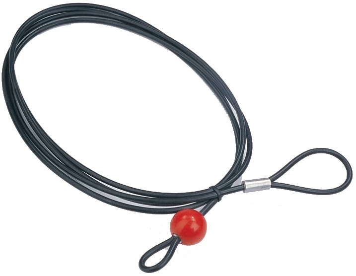 Diebstahlsicherung für Kajaks. Einfach das Stahlseil um den Bootssitz legen, die Kugel durch die Schlaufe ziehen, ins Auto legen, Türen abschließen fertig. Natürlich kann das Rack Guard auch mit einem herkömmlichen Schloss gesichert werden.