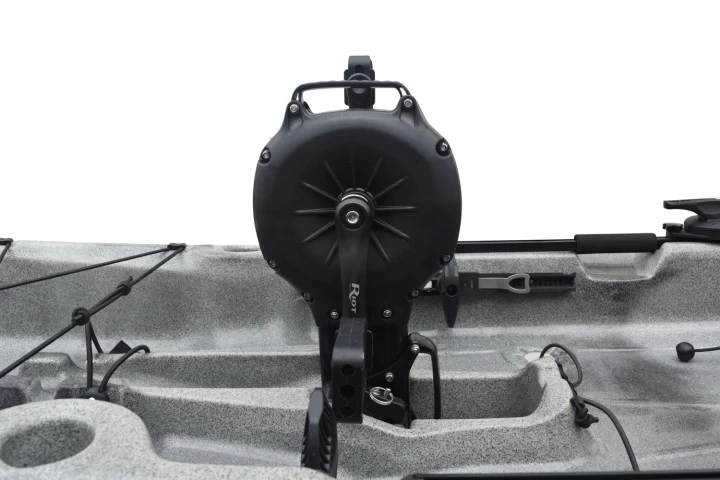 Angelkajak aus stabilem PE mit integriertem Pedalantrieb. Für den Transport, oder wenn es nur mit dem Paddel auf´s Wasser gehen soll, lässt sich der Antrieb einfach entnehmen.