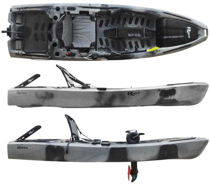 Der Mako Versa wird inklusive des Pedalantriebs (Impulse Drive oder Flip Drive) und einer Hand-Steueranlage geliefert. Komplettausstattung mit DeLuxe Sitz (bequeme, verstellbare Sitzanlage), Schienensystem rundum, 4 x Flush Rutenhaltern, verschliessbaren Staufächern, seitlichen Paddelhaltern.